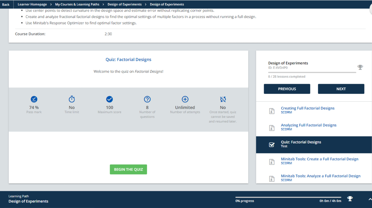 Diseño de experimentos cubre los aspectos fundamentales del diseño de experimentos o DOE. Reflejando los temas tratados en nuestro curso “Diseños factoriales”, esta ruta de aprendizaje explica temas clave como: